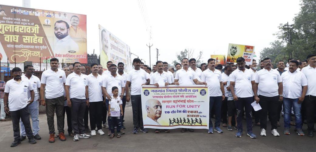 धरणगाव : भारताचे लोहपुरुष व देशाच्या एकीचे शिल्पकार सरदार वल्लभभाई पटेल यांच्या जयंतीनिमित्त शुक्रवार रोजी राष्ट्रीय एकता दिवस धरणगाव येथे अत्यंत उत्साहात साजरा करण्यात आला. जळगाव जिल्हा पोलीस दलाच्या मार्गदर्शनाखाली विविध ठिकाणी एकतेचे संदेश देणारे उपक्रम राबविण्यात आले. त्याचाच एक भाग म्हणून, मा. पोलिस अधीक्षक श्री. महेश्वर रेड्डी यांच्या मार्गदर्शनाखाली धरणगाव पोलिस स्टेशन तर्फे “Run for Unity – एक दौड देश की एकता और अखंडता के लिए” हा उपक्रम उत्साहात पार पडला. या रन फॉर युनिटी उपक्रमाची सुरुवात छत्रपती शिवाजी महाराज स्मारक पासून परिहार चौक, मार्गे कोट बाजार, मेन रोड, धरणी बाजार, भडंगपुरा, व्हाईट हाऊस, बस स्थानक आणि पोलिस स्थानक येथे समारोप करण्यात आला. कार्यक्रमाची सुरूवात छ. शिवाजी महाराजांच्या स्मारकाला माल्यार्पण करून झाली, व राष्ट्रीय एकात्मतेची सामूहिक शपथ घेण्यात आली.