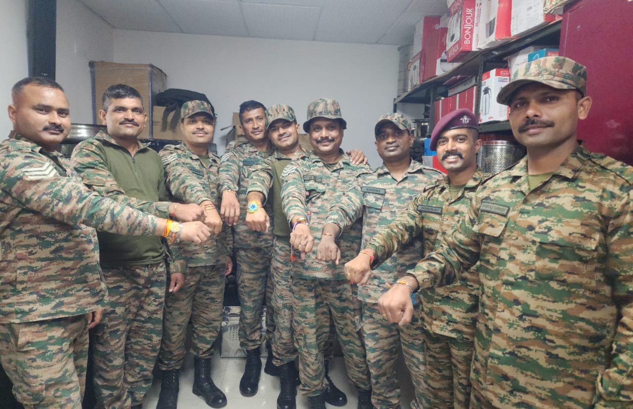 भारतीय जवानांनी एकमेकांना राख्या बांधून केला आनंद साजरा