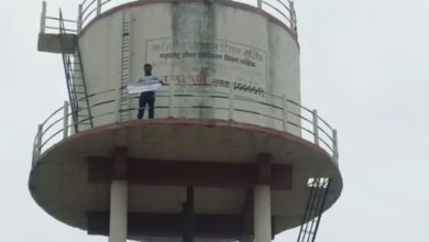 नांदगाव-पोखरी येथे ग्रामसेविका एस.एस. खडाख यांच्या मनमानी कारभारच्या विरोधात शोले स्टाईल आंदोलन