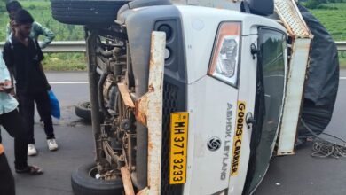 धावता आयशर ट्रक पलटी;महामार्गावर वाहतूक ठप्प,बचाव पथकाची धावपळ
